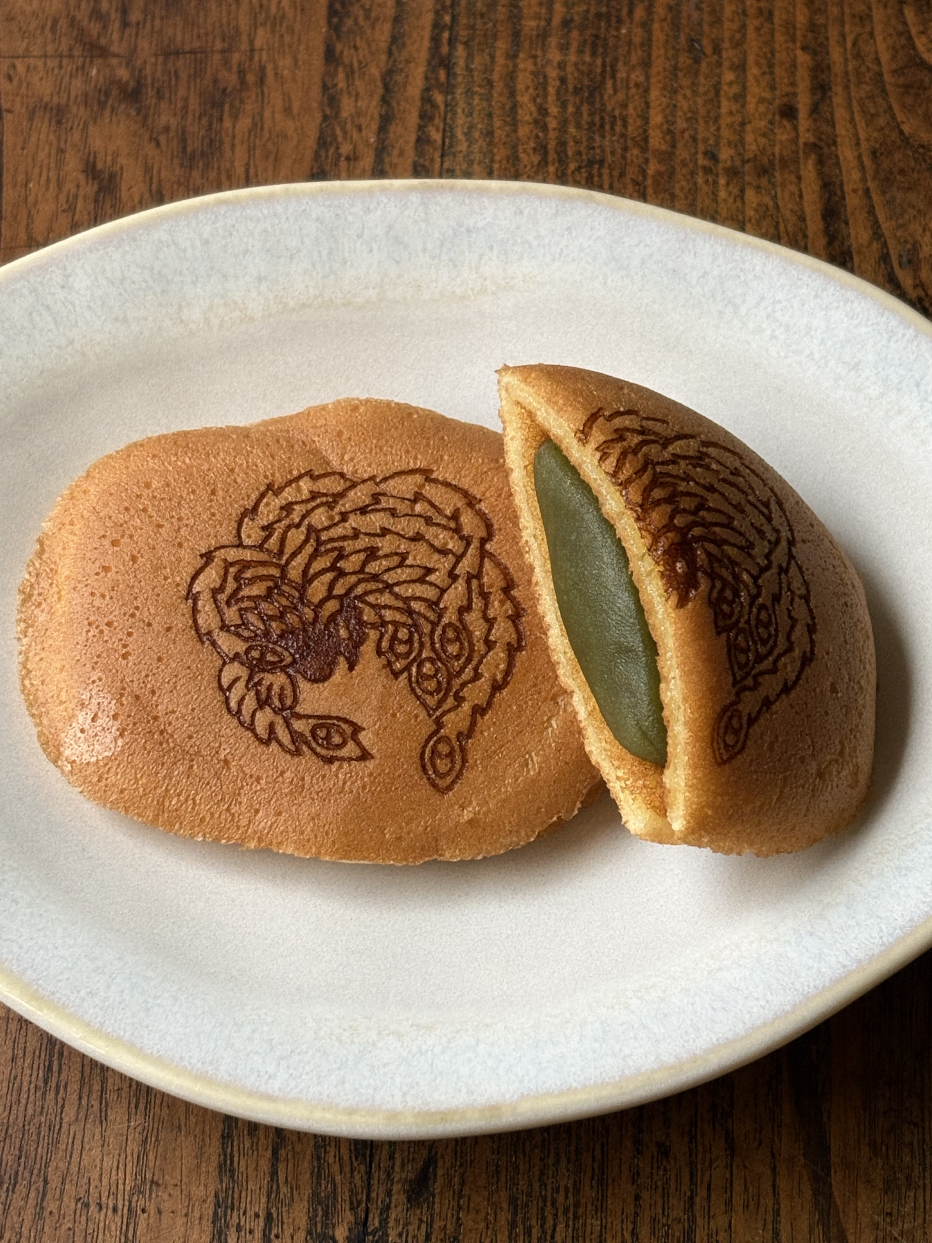 焼菓子には、自家製白餡とお抹茶を混ぜ合わせた特製「抹茶餡」を。